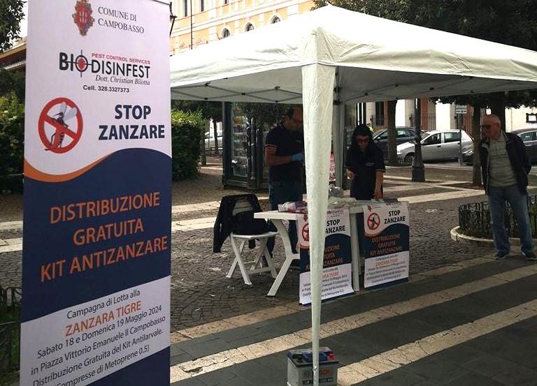 Il Comune di Campobasso rinnova la campagna di prevenzione contro la diffusione delle zanzare, con un’attività informativa che avrà luogo venerdì 11 luglio (dalle ore 17 alle 20) a sabato 12 luglio (dalle ore 10.30 alle 13.30) presso piazza Vittorio Emanuele II. Sarà allestito un gazebo gestito da personale specializzato, dove i cittadini potranno ricevere gratuitamente un kit antilarvale per uso domestico.